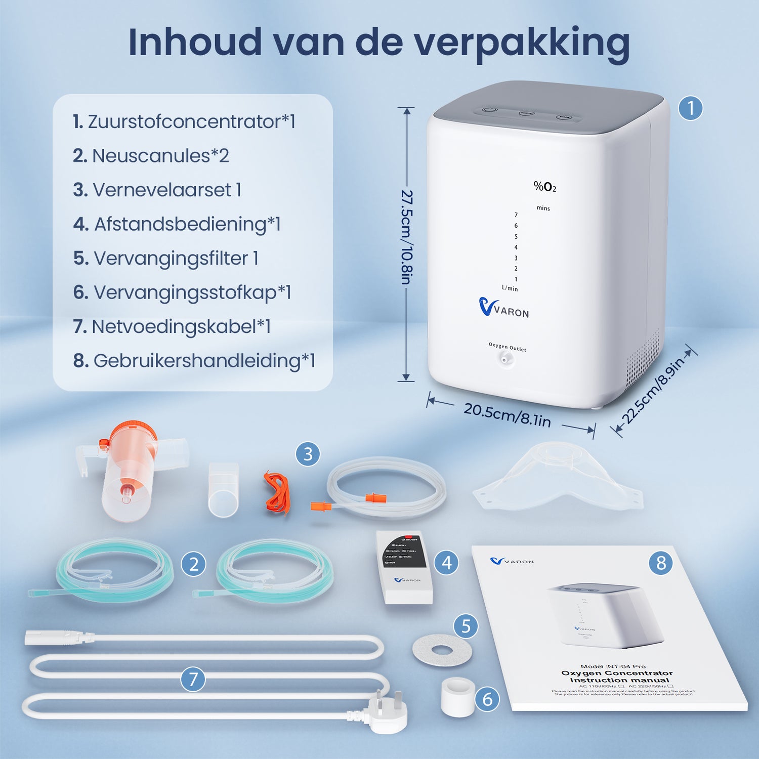 VARON VH-3 PRO zuurstof apparaat voor thuis | 1-10L/min Instelbaar, Vernevelaarfunctie, Stille Therapie, CE-goedgekeurd